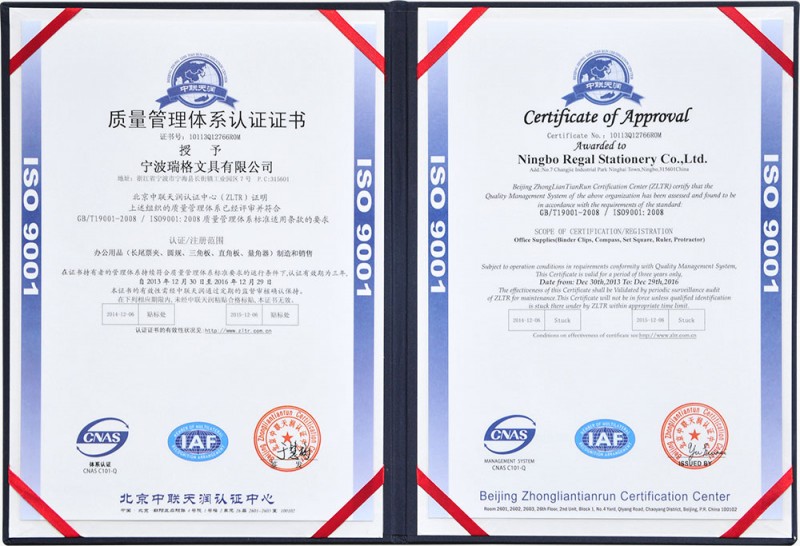 ISO9001认证证书